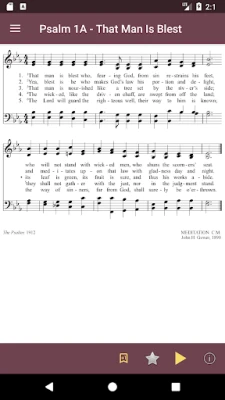 Intended as a supplement to the print and digital editions of the Trinity Psalter Hymnal (https://www.trinitypsalterhymnal.org/), the Trinity Psalter Hymnal app features the full text and music of the songbook, as well as tune recordings (professional and high-quality MP3 recordings to come soon in a future upgrade). Some key features of the app include: searchable full text, browsable title and first line index, favorite songs list, advanceable bookmark for working through the songs one by one, and looping of a tune for the number of stanzas in each song. The mobile app is a great resource for planning worship, learning new songs, and singing along in family devotions.